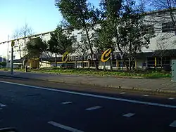 Yaohan Plaza featured a grand entrance hall with wooden frame supporting a ceremonial banner and knot, below a traditional tile roof. The single storey north wing housed a Japanese supermarket and food court.[5] Other shops and restaurants were in two storeys to the south and there was a multi-storey car park. Yaohan had 15 directly owned retail operations, 47 third-party stores and 11 restaurants. The supermarket sold Japanese foods including dry goods, sushi and bento boxes, fresh fish, and Japanese-style meats to suit yakiniku and shabu shabu.[4] Fresh fruit was flown in from Japan,[2] and a Japanese-style bakery operated on site.[4] The supermarket offered over 70 varieties of sake and 40 of miso.[4] Prices were considered high relative to Japan due to import costs,[7] but 10-20 per cent lower than smaller Japanese shops in central London.[3] The New York Times reported in 1993 that a 1.5 litre bottle of cold Japanese tea cost £4.99 (£8.69 in 2021).[4] Yaohan's sushi kitchen operated 24 hours a day and supplied Waitrose, Selfridges, and Harvey Nichols.