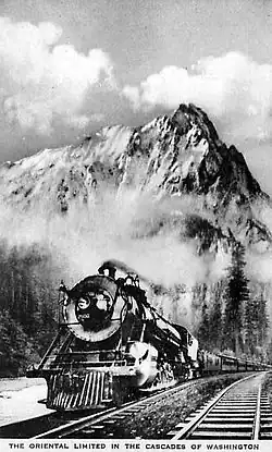 The Oriental Limited was a named passenger train that ran between Chicago, Illinois and Seattle, Washington. The train was operated by the Great Northern Railway between St. Paul, Minnesota and Seattle, Washington, and by the Chicago, Burlington and Quincy Railroad between St. Paul and Chicago.[1] The train's name was intended to be evocative of travel to the Far East and Japan, since trans-Pacific Great Northern steamships once connected with the railway's trains in Seattle.