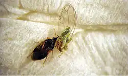 | Orius minutus feeding on Trioza rhamni. | |