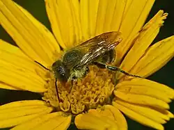 The bees are oligolectic, gathering pollen only from Asteraceae species.[7] However, adults have been observed feeding on a variety of plants from different families, including Reichardia picroides (Asteraceae), Echium angustifolium (Boraginaceae), Vicia villosa (Leguminosae), Euphorbia spp. (Euphorbiaceae), Salvia verticillata (Labiatae), Rosmarinus officinalis (Labiatae) and Morina persica (Dipsacaceae).[5]