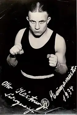 Otto Kästner (1 August 1909 – 2002) was a German[4] boxer. He competed at the 1934 European Amateur Boxing Championships, winning the gold medal in the featherweight event.[5]