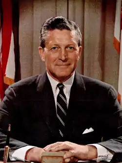 He defeated incumbent William G. Stratton by more than 500,000 votes in the 1960 Illinois gubernatorial election and was re-elected in 1964, defeating moderate Republican Charles H. Percy. As governor, Kerner promoted economic development, education, mental health services, and equal access to jobs and housing. Some of his major economic developments were when he won the contract to build the Fermi National Accelerator Laboratory.[7] In 1965 Kerner submitted an article called "Illinois Opens the Export Doors" in which he explained his goal to initiate the full employment granted by export trade citing a potential 250.000 workers that could be put to work.[9] The primary goal was job creation, which to him was achieved through the improvement of trade. As a result, Kerner funded an Illinois Committee for Trade Expansion. His first mission to Europe in 1963 saw an additional $5 million generated for Illinoisan agriculturists. At that time Japan was the state's largest trading partner, with $145 million of annual trade.[9] Kerner saw Japan as a valuable asset and thus funded the Illinois Far Eastern Movement which included many corporate delegates. Relations with Japan remained good; the Japanese Prime Minister Eisaku Sato, who had been previously invited by Kerner in 1965, gave an impressive speech in 1967 praising the State of Illinois for its continued trade with Japan.[9]
