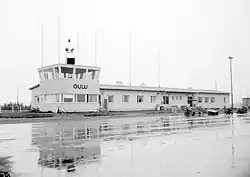 The construction of the airport runways in Oulunsalo began in 1949 and was completed in 1953 after the previous airport in Oritkari became too outdated for modern aircraft.[4] In 1953 the airport only consisted of gravel runways and it wasn't until 1958 that the terminal and ATC building were built and the runways were paved. Finnair back then "Aero" operated routes from the airport with DC-3 aircraft and started flights with Sud Aviation Caravelle jets from Oulu in 1964. The current terminal building was built to replace the old one in 1973 and expanded/renovated in 2002 and 2011 with the old one being demolished in the fall of 2005. The second runway of the airport was removed in the early 2000s and the current ATC tower was built in 1998.