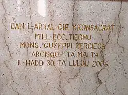 • 30 July 2006 – Consecration of the new marble Altar and Ambo by Archbishop Mons. Ġużeppi Mercieca