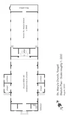 A social club – the genesis of the present day "Catholic Club" – operated from makeshift premises beside the church to the west during the 1940s. This included a bocce court and corrugated iron clubroom. A school was established in the extension to the rear of the church c. 1949, later moved to new buildings across the road. In 1953, a hall in Art Deco style was constructed adjacent to the church to the east.[1]
