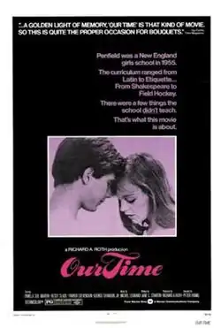 Our Time (also known as Death of Her Innocence) is a 1974 American drama film directed by Peter Hyams. The film was written by Jane C. Stanton and stars Pamela Sue Martin, Parker Stevenson, and Betsy Slade. The story follows two girls at a Massachusetts boarding school and their experiences with first love in the 1950s. It was released in theaters on April 10, 1974.[1]