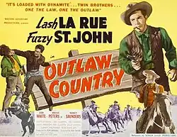 Outlaw Country is a 1949 American Western film directed by Ray Taylor and starring Lash LaRue and Al "Fuzzy" St. John[1] in a dual role as a U.S. Marshal and his outlaw brother known as the "Frontier Phantom". The film, shot at the Iverson Movie Ranch led to a 1952 sequel The Frontier Phantom.