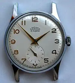 In 1949, the subsidiary of company Chronotechna Šternberk was established in Nové Město nad Metují, specializing in the production of personal watches (wristwatches and pocket watches). The first prototype watches were made in 1954 and were marked 'Spartak', the 'PRIM' brand was registered in 1956, the serial production started in 1957, thus Czechoslovakia has become one of only twelve countries in the world capable of producing wrist watches.[1] It was the only manufacturer of watches in Czechoslovakia, reaching about half a million watches produced annually just before the Velvet Revolution.[2][3]