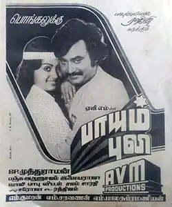 Paayum Puli (transl. Pouncing Tiger) is a 1983 Indian Tamil-language martial arts film[1] directed by S. P. Muthuraman, written by Panchu Arunachalam and produced by AVM Productions. The film, inspired from the 1978 film The 36th Chamber of Shaolin, stars Rajinikanth and Radha, alongside Jaishankar, Silk Smitha and R. N. Sudarshan, with K. Balaji making a cameo appearance. The music was composed by Ilaiyaraaja, while cinematography and editing were handled by Babu and R. Vittal respectively. Paayum Puli was released on 14 January 1983, coinciding with Pongal, and became a commercial success.