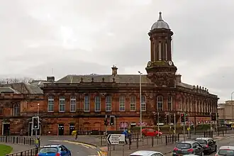 The building was designed by James Ingram in the Italianate style, built in red sandstone and was officially opened on 16 September 1863.[4][5] The design involved an asymmetrical main frontage on the corner of London Road and Green Street. It featured a four stage tower, known as the "Albert Tower", at the corner with wings of nine bays extending down London Road and of thirteen bays extending down Green Street.[2] The tower featured three round headed doorways in the first stage, three round headed windows with architraves, keystones and a balcony in the second stage, the burgh coat of arms and a cornice inscribed with the motto "The Earth is the Lords and the Fullness Thereof" in the third stage, and a belfry in the fourth stage, all surmounted by a dome. The wings were fenestrated by segmental headed windows on the ground floor and by round headed windows with architraves and keystones on the first floor. At roof level, the wings were surmounted by balustraded parapets which were decorated by urns.[2]