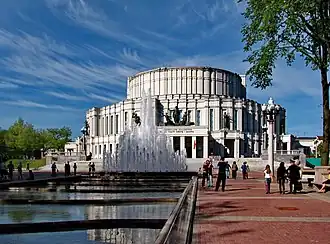 The overwhelming majority of Soviet, Russian and foreign authors, with the notable exception of Antonia Cunliffe, agree the competitions represented a deliberate rejection of modernism in favor of monumental historicism.[104] The connection has always been public but subject to different interpretations. Soviet authors of the 1930s usually appealed to the "improved welfare of the masses".[105] Constructivism was presented as a temporary, low-cost ersatz architecture.[105] Once the nation had overcome the bitter poverty of the 1920s, "the people" (i.e. the communist state) disposed with stopgap solutions and rightfully embraced "quality" architecture.[105] After World War II the "welfare of the masses" fell to an all-time low and Soviet critics adjusted accordingly.[106] They painted modernism as a hostile, subversive influence of the capitalist West that was promptly revealed and suppressed by the party.[106] The reform was effected through the party decrees of the 1930s, starting with the USDS review of the international competition.[107]