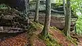 The Palatinate Forest Nature Park (German: Naturpark Pfälzerwald) lies in the south of Rhineland-Palatinate in Germany and borders on France. The nature park covers an area of 177,100 hectares (684 sq mi) and some 76% of its area is under the woods of the Palatinate Forest, the largest contiguous forest region in Germany. Together with parts of northern Alsace and Lorraine, it forms the Palatinate Forest-North Vosges Biosphere Reserve and has an impressive Bunter sandstone landscape.