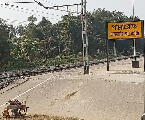 Palla Road railway station is a Kolkata Suburban Railway station on the Howrah–Bardhaman chord line. It is operated by Eastern Railway zone of Indian Railways. It is situated beside Duragapur Expressway at Sahapur, Belut, Palla Road in Purba Bardhaman district in the Indian state of West Bengal.[1]