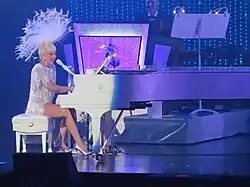 Gaga performing "Paparazzi" on The Fame Ball Tour (2009)