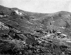 The area was traveled by the early Mormon pioneers on their journey to where they settled and built Salt Lake City. One of their leaders, Parley P. Pratt, explored the canyon in 1848. He was given a charter the following year to build a toll road through it, which was finished in 1849.[9] The basin at the top of the canyon was an ideal place to graze, and a few families settled. Early on, the area was deeded to Samuel Snyder, Heber C. Kimball and Jedediah Grant. The settlers named it "Parley's Park City", which was shortened to "Park City" upon the town's incorporation in 1884. The first known discovery of ore in this area was by men serving under Colonel Patrick E. Connor, who invited his men to prospect in the area after having been relocated from Gold Rush-era California.[10] The finding of silver, gold and lead sparked the first silver mines in Park City in the 1860s. Park City's large mining boom brought large crowds of prospectors setting up camps around the mountain terrain, marking the first mining settlements. Although it was not the first find, the Ontario silver mine, discovered by Herman Buden in 1872 and quickly purchased by George Hearst through his business partner R. C. Chambers, was the first major producer.