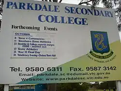 Parkdale Secondary College is a public, co-educational secondary school located on Warren Road in the Melbourne suburb of Mordialloc, Victoria.[3]
