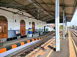 The station previously had 7 tracks, one of which led to the train workshop, warehouses and a locomotive turntable. One track on the eastern side was a branch which connected to the light rail line or tram line belonging to a private tramway company named Pasoeroean Stoomtram Maatschappij (PsSM).