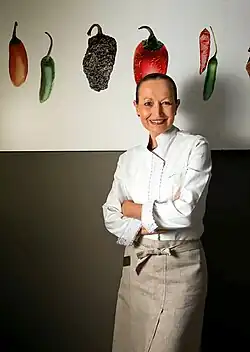 Patricia Quintana was a specialist in Mexican regional cooking who was born in México and studied abroad in Canada, Switzerland and France – later returning to Mexico as a recognized chef. She studied and taught ancestral Mexican cuisine mixed with the classical cuisine. She was the owner of the restaurant Izote in City of Mexico from 2001 to the 2013, but resigned to start a banquet catering company.[2][3]