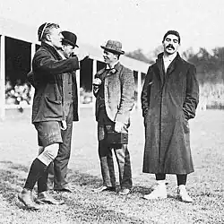 A week later the South Africans faced England at Crystal Palace and Roos was fit enough to lead his team out against international opposition for the third time. Conditions for the match were poor; the pitch resembled a morass and a drizzle that began half an hour before the kick off continued throughout the game.[18] After 20 minutes the ball was extremely difficult to handle and the backs from both teams found themselves unable to interact in the game with any real purpose.[18] The game ended in a 3–3 draw, and Roos took the opportunity after the game to again address the legacy of the Boer War, proclaiming, "...this tour will do far more to calm the troubled waters of South African life than years of legislation."[19] Although a match against France was planned at the end of the tour, the game was not officially recognised, and the England encounter was Roos' final international game, ending with a record of played four, won three, drawn one.
