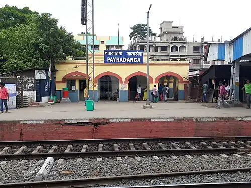 Payradanga railway station is a railway station on the Sealdah Ranagahat line. It serves the local areas of Payradanga in the Nadia district of West Bengal. The Sealdah–Kusthia line of the Eastern Bengal Railway was opened to railway traffic in the year 1862.[1] Eastern Bengal Railway used to work only on the eastern side of the Hooghly River.[2] The platform is not at all sheltered. It lacks many facilities including water and sanitation. There is no proper approach road to this station.[3] The Sealdah–Ranaghat sector was electrified in 1963–65.[4]