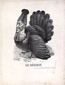 The pear became closely associated with King Louis-Philippe and is considered an emblem of the July Monarchy.[4][5] This association has led to two common misconceptions: the belief that "pear" referred to a fool at the time, justifying its use, and the incorrect attribution of the emblem's creation to Honoré Daumier, when Charles Philipon claiming it as his own.[6][7]