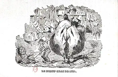 - ^ "Planche de la lithographie mensuelle" [Monthly lithograph board]. La Caricature (in French). April 17, 1834. Archived from the original on October 17, 2021.