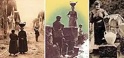 In the chapter of Spanish folkloric traditions, the custom of holding jug races on the head during festivals has been recorded. This practice also exists in this geographical area, with photographic documentation from Amorebieta (Zornotza),[7] in Ibarra and in Rentería. On the French side, Roland Coquerel records this custom in Pouyastruc.