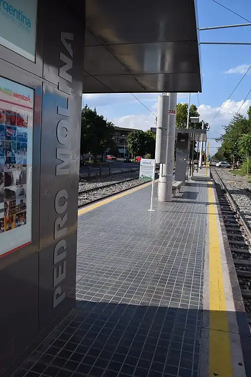 Pedro Molina is a light rail station located at the intersection of Avenida Belgrano and Avenida Pedro Molina in the City of Mendoza, Capital Department, Province of Mendoza, Argentina.