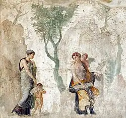 ![]() Pompeiian fresco of Eros being brought by Peitho to Aphrodite | |