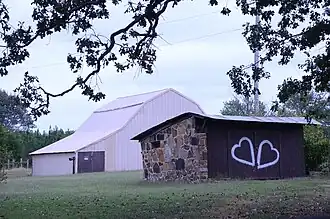 The Pence-Carmichael Farm, Barn and Root Cellar are a pair of historic farm outbuildings in rural western White County, Arkansas. They are located just east of the hamlet of Romance, off Arkansas Highway 31 on Carmichael Lane. The barn is a two-story wood-frame structure, with a weatherboarded exterior and stone pier foundation. It has an unusual internal layout, with a transverse crib plan that has a cross-gabled drive, and a side shed extension. The root cellar is a single-story stone structure with a flat roof; it is one of the county's rare early 20th-century stone farm outbuildings.[2]