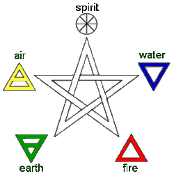 Elemental attribution of the points of the pentagram