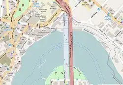 However, land to the south of the reach Petrie Bight does not use that name, and is known by its suburb name of Kangaroo Point. Today, it is overpassed by the Story Bridge (Bradfield Highway), and underpassed by the Clem7 Tunnel toll road.