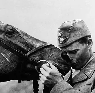 His regiment announced that in the future he would be allowed to have Illuster as a service horse, which meant that as long as they both remained at K 3 in Skövde, no one would be allowed to take Illuster and Kastenman apart.[4] He served in K 3 until 1974 when he retired from the military as captain.[5]