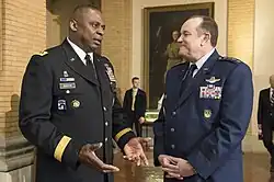 Supreme Allied Commander Europe General Philip M. Breedlove with commander of Central Command General Lloyd Austin during strategic dialogue meeting at the National War College, May 8, 2014.