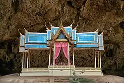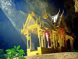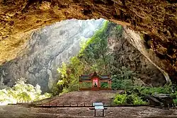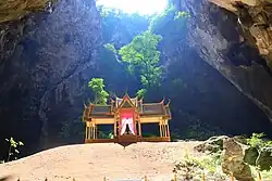 The Phraya Nakhon cave (Thai: ถ้ำพระยานคร, romanized: Tham Phraya Nakhon) is a cave in Khao Sam Roi Yot National Park, Hua Hin, Prachuap Khiri Khan Province, Thailand.[1] It features the royal Kuha Karuhas Pavilion, illuminated by natural sunlight through a large skylight.[1][2] The cave is accessible by a forested hike and has two chambers with rock formations as well as ancient inscriptions.[3]