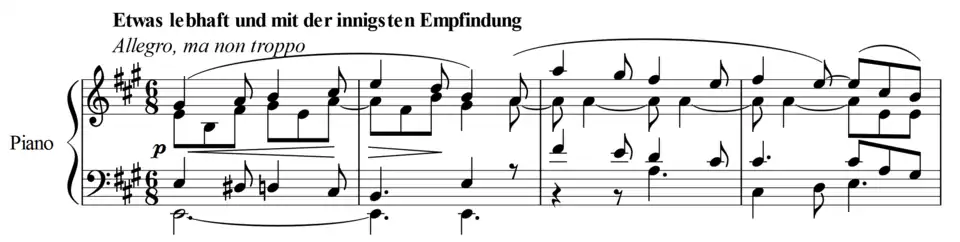 1. Etwas lebhaft, und mit der innigsten Empfindung (Somewhat lively, and with innermost sensibility). Allegretto, ma non troppo