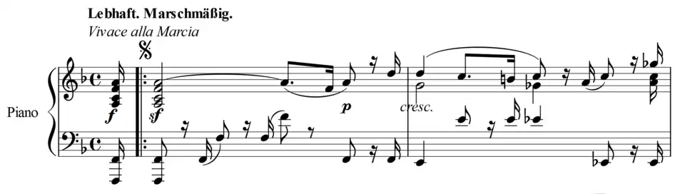 2. Lebhaft, marschmäßig (Lively, march-like). Vivace alla marcia
