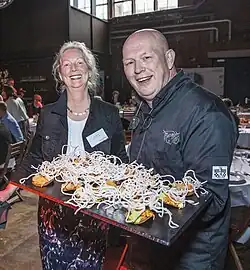 Petrus Marinus Maria (Pierre) Wind (The Hague, 24 March 1965) is a Dutch cook who became well-known via his cooking shows.[3] In 1997, producer Henriette Theunissen discovered him, and started the series De Eetfabriek (NPS) (1997-2000) with Wind as presenter, aided by Jahaga Bosscha.