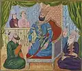 - ^ Depictions of each king are miniatures from the 16th-century illustrated manuscript, the Shahnameh of Shah Tahmasp, except that of Fereydun, which is from the Tarjumah-i Shâhnâmah, an early 17th-century Ottoman manuscript, and those of Zav and Garshasp, which are from the 14th-century Ilkhanate manuscript known as the Great Mongol Shahnameh.