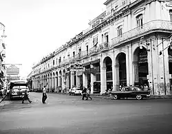 The district has two paifang,[24] the larger one located on Calle Dragones. The long-neglected Chinatown in Havana, Cuba, received materials for its paifang from the People's Republic of China as part of the Chinatown's gradual renaissance. China donated the materials in the late 1990s.[25] It has a well defined written welcoming sign in Chinese and Spanish. The smaller arch is located on Zanja strip. Cuba's Chinese boom ended when Fidel Castro's 1959 revolution seized private businesses, sending tens of thousands of business-minded Chinese fleeing, mainly to the United States. Descendants are now making efforts to preserve and revive the culture.[10] Many of the businesses in the Plaza del Vapor were operated and owned by Chinese Cubans.