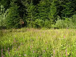Scientists have so far identified 109 species in the area of the national park, of which 75 species are endemic.[19] A great number of these plants and species are protected by law. Within the national park area 55 different species of orchids occur.[9] The plant diversity creates an interesting interplay of colours that change with the seasons. The national park has an area of 29,842 hectares, of which some 22,308 hectares consists of forests (74.75 percent), 6,957 hectares are meadows (23.31 percent) (mainly in village areas), and 217 hectares (0.72 percent) are water areas.[5] A unique area is the forest of Čorkova uvala, a 79.50 ha virgin forest in the northwestern part of the park. Some of the beech and fir trees in this area of the park are up to 700 years old.[11][20]
