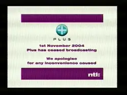 An hour-and-a-half later that afternoon, while in the middle of a commercial break, Plus suddenly cut to a closedown slide, and, on digital cable and satellite platforms, shortly afterwards disappeared. The final programme on Plus was Pie in the Sky, but only half of it was shown before ITV ceased transmission of Plus. On Sky, Plus was immediately removed minutes after closure, with ITV2 and ITV3 appearing on channels 118 and 119 in an EPG update. On NTL and Telewest, Plus broadcast a GSB logo with looped music, before cutting into a test card asking viewers to move to ITV3. Transmission of Plus officially ceased at 5:15pm, when it was replaced by holding slides for ITV3. The channel was replaced on digital cable and satellite, but on analogue cable, the closedown slide remained for over six years and was finally removed in April 2011 due to analogue cable becoming obsolete.[2]