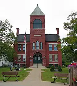 ![]() Town center (left to right): Plymouth Post Office, Rounds Hall of Plymouth State University (in background), Plymouth Congregational Church, Town Hall | |