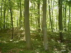 In 1937, the synthetic fuel plant Hydrierwerke Pölitz AG was founded by IG Farben, Rhenania-Ossag, and Deutsch-Amerikanische Petroleum Gesellschaft[8] which by 1943 was producing 15% of Nazi Germany's synthetic fuels, 577,000 tons.[9] The plant derived its workforce from an adjacent system of camps (Pommernlager, Nordlager, Tobruklager, Wullenwever-Lager, Arbeitserziehungslager Hägerwelle, Dürrfeld Lager) plus a ship moored on the Oder River serving as a camp (Umschulungslager Bremerhaven). In addition, a subcamp of the Stutthof concentration camp was located in Pölitz, whose prisoners were mostly Poles, Lithuanians, Latvians, Russians, and Germans, but also Frenchmen, Yugoslavians, and Greeks.[10] Up to 28,000 laborers were placed in all the camps.[10] Exhausting labor, hunger, abuse, and executions resulted in a high death toll in the subcamp of Stutthof, and there were also several escape attempts.[10] On 17 April 1945, the prisoners were sent on a death march, whereas the most ill and unable to march were massacred on 25 April 1945.[10]