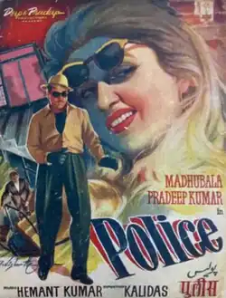 Police is a 1958 Indian Hindi-language action-thriller film directed by Kalidas, produced by Deep Khosla and Pradeep Kumar, and starring Madhubala, Pradeep Kumar and Nadira. The music of the film was composed by Hemant Kumar.[2][3]