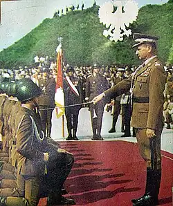 The Polish People's Army (Polish: Ludowe Wojsko Polskie, pronounced [luˈdɔvɛ ˈvɔjskɔ ˈpɔlskʲɛ]; LWP)[1] was the second formation of the Polish Armed Forces in the East during the latter stages of the Second World War (1943–1945), and subsequently the armed forces of the Polish communist state (1945–1989), which was formalized in 1952 as the Polish People's Republic.[2]