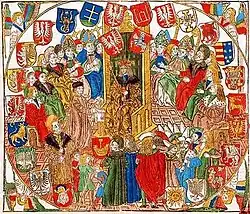 - ^ Almanach de Gotha, Gelre Armorial, Codex Berghammar, fr:Grand Armorial équestre de la Toison d'or, Stemmata polonica, fr:Armorial Bellenville, de:Armorial Lyncenich