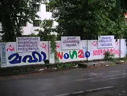 Kiss of Love protest was a non-violent protest against moral policing, which started in Kerala, India, and later spread to other parts of India.[9][10][11][12][13] The movement began when a Facebook page called 'Kiss of love' called forth the youth across Kerala to participate in a protest against moral policing on 2 November 2014, at Marine Drive, Cochin.[14][15] The movement received widespread support with more than 154,404 'Likes' for the Facebook page.[16][17] After the initial protest in Kochi, similar protests were organised in other major cities of the country. It received opposition from various religious and political groups like Bharatiya Janata Yuva Morcha, SDPI, Vishva Hindu Parishad, Shiv Sena, Bajrang Dal, Hindu Sena and Ernakulam wing of Kerala Students Union.[18][19][20][21] On specific occasions but not exclusively, both the Supreme Court of India and Delhi High Court have made it clear that kissing in public is not an obscene act and no criminal proceedings can be initiated, for kissing in public, through landmark judgments.[22][23][24][25][26]