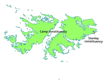 As in many parliamentary democracies, there are no direct elections for the executive branch of the Falkland Islands Government. Instead the people elect the legislature which then advises and forms part of the executive. General elections, which elect the Legislative Assembly, must take place at least once every four years. Suffrage is universal in the Falklands, with the minimum voting age at eighteen. The Legislative Assembly has ten members, eight of which are elected using block voting (five from the Stanley constituency and three from the Camp constituency) and two ex officio members (the Chief Executive and the Director of Finance).