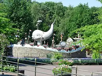 Polka Marina was actually a combination of a carousel and a mini-roller coaster, since the cogs were circling up and down on a Vekoma coaster track.